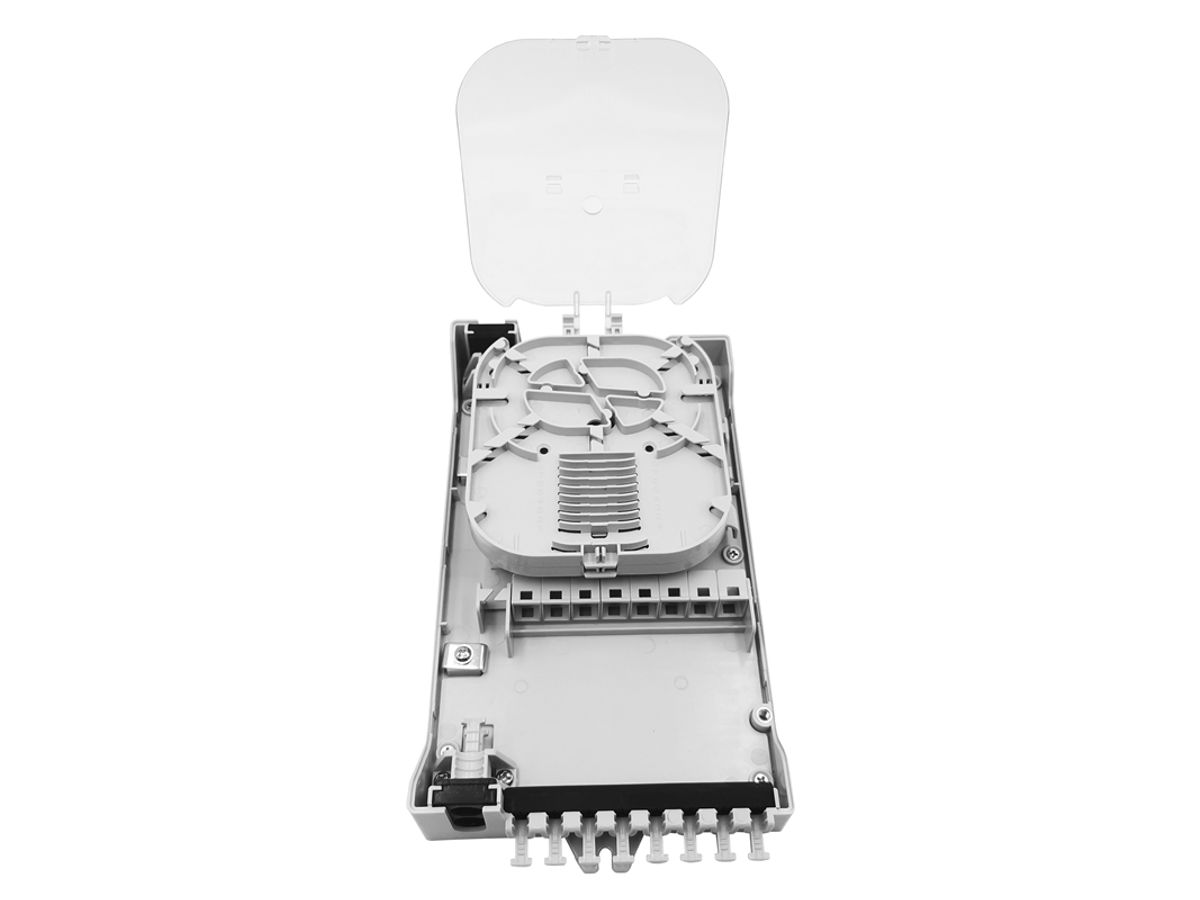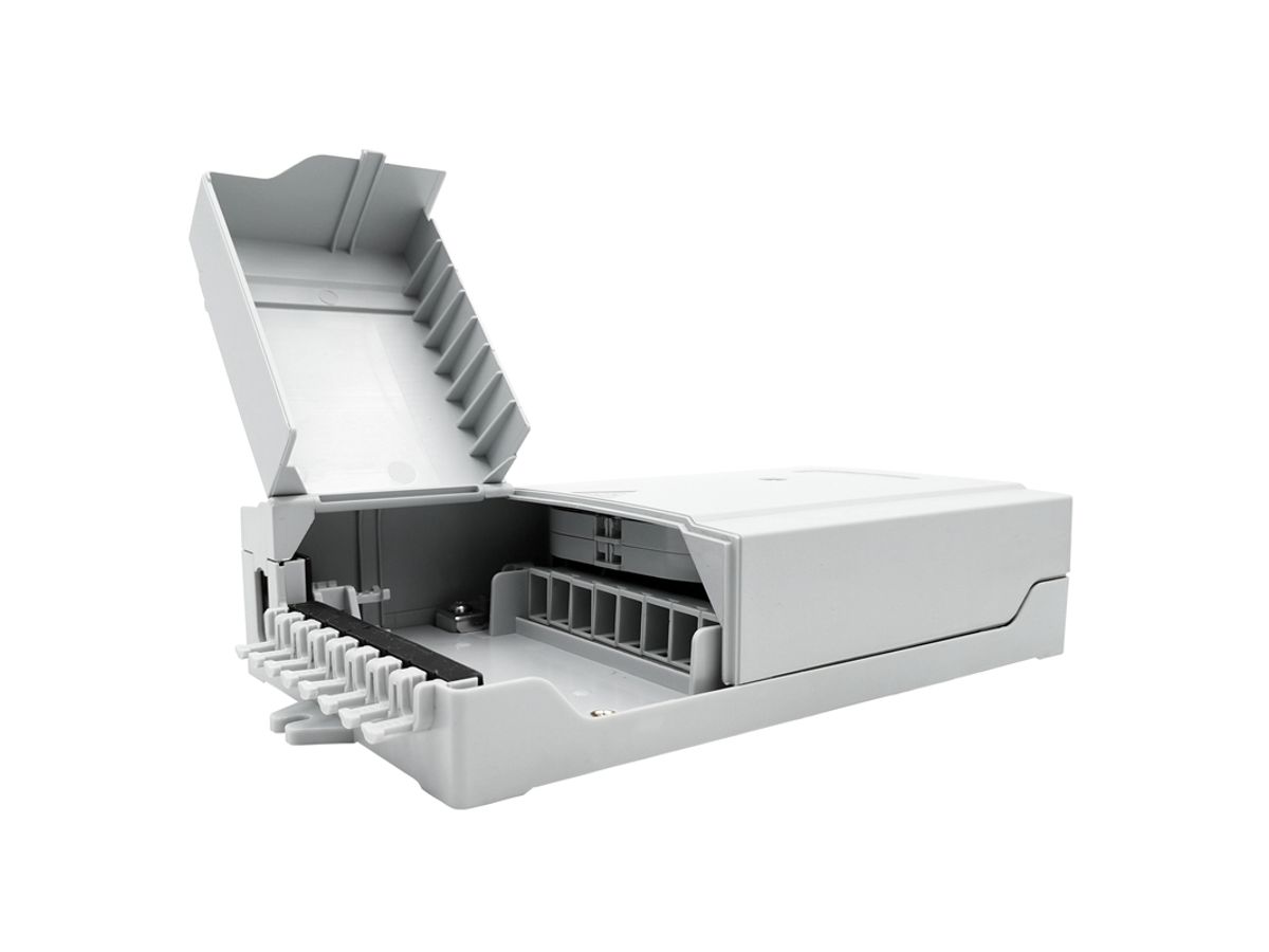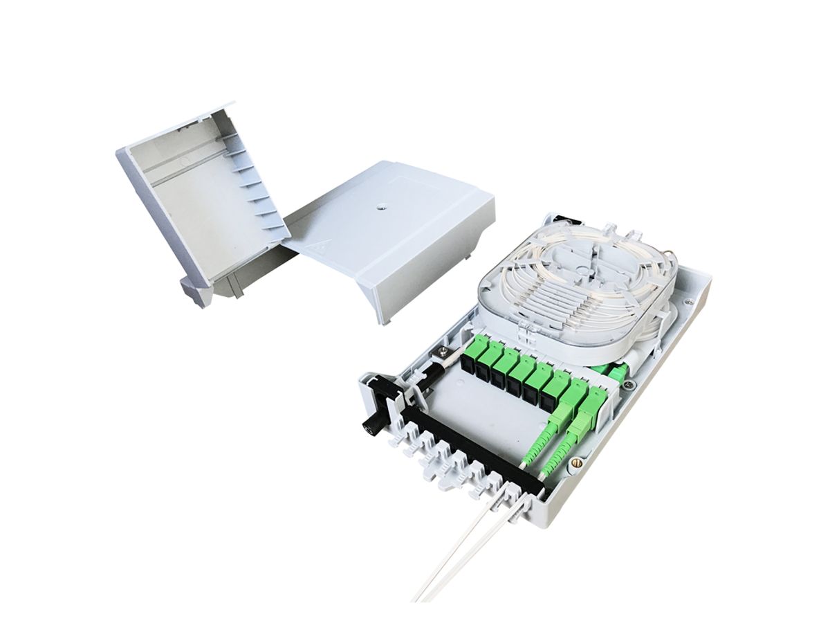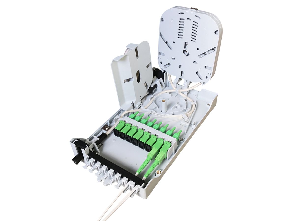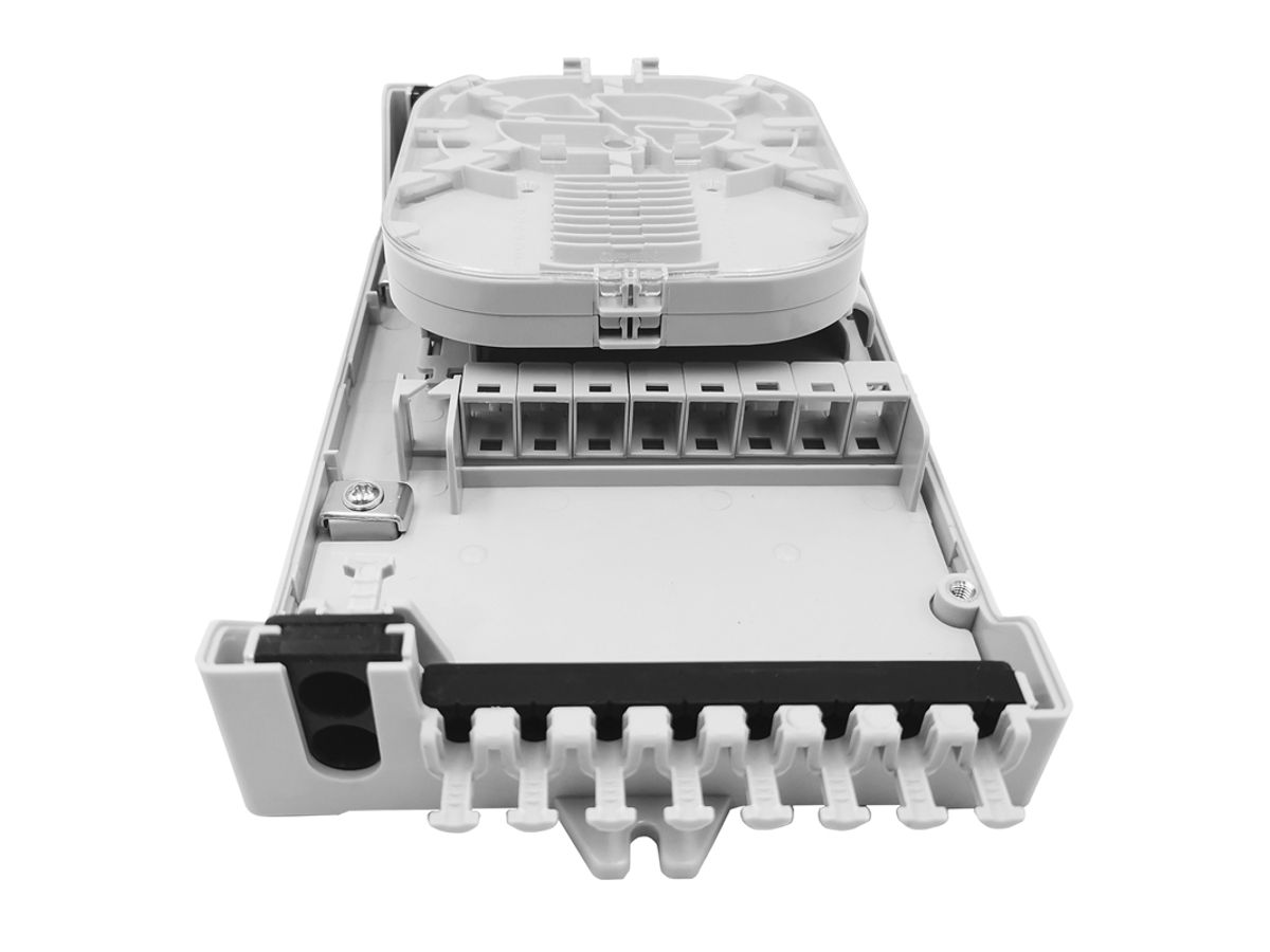 Er kunnen 8 vezels uitgelast worden op pigtails, de adapters kunnen er eenvoudig in worden geklikt.