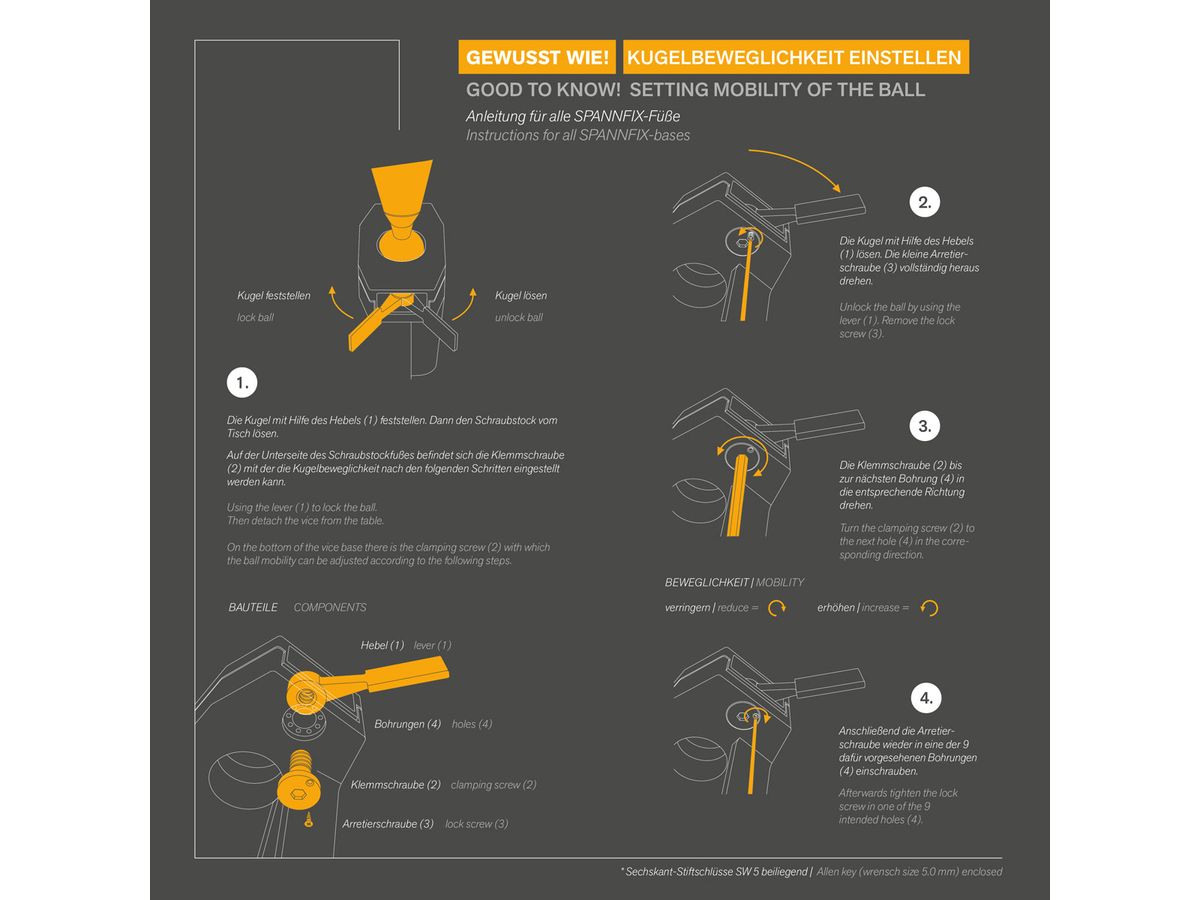 Precisiekogelgewricht 360° draaibaar, traploos afsluitbare snelsluiting, kwaliteitsproduct Made in Germany