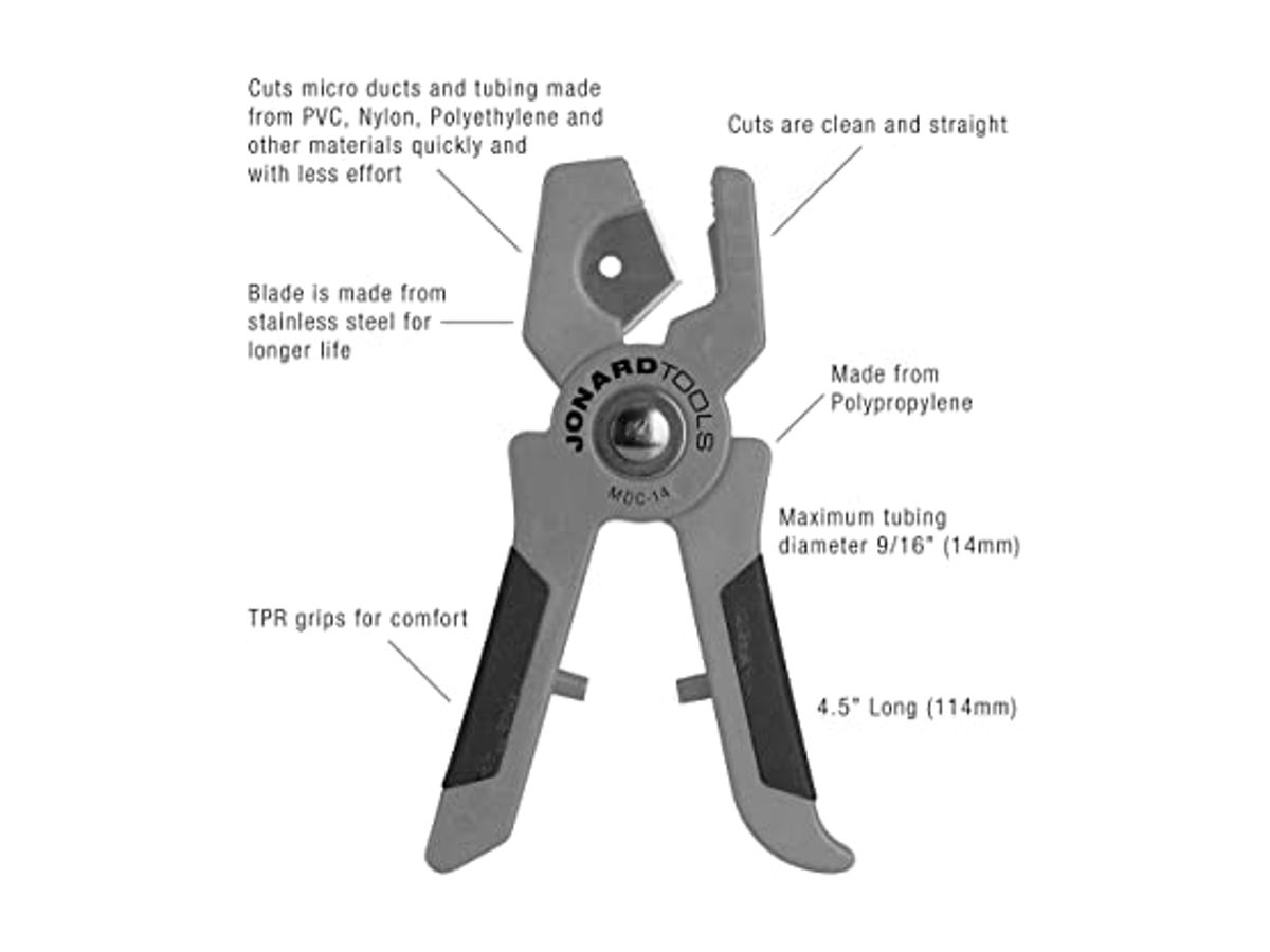De MDC-14 tube cutter van Jonard is o.a. geschikt voor het knippen van duct maar ook voor tubes van pvc en nylon.