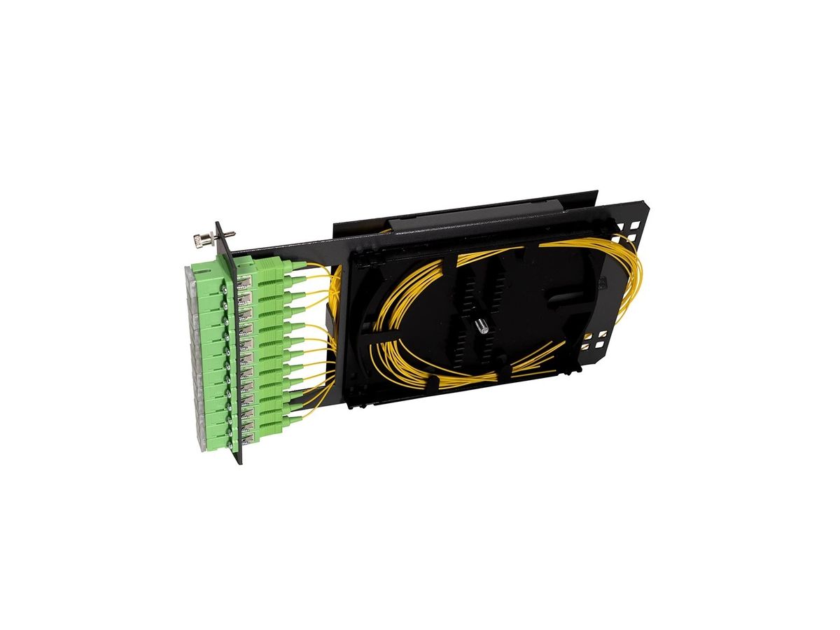 Biedt ruimte voor 12 SC duplex of 12 LC Quad adapters