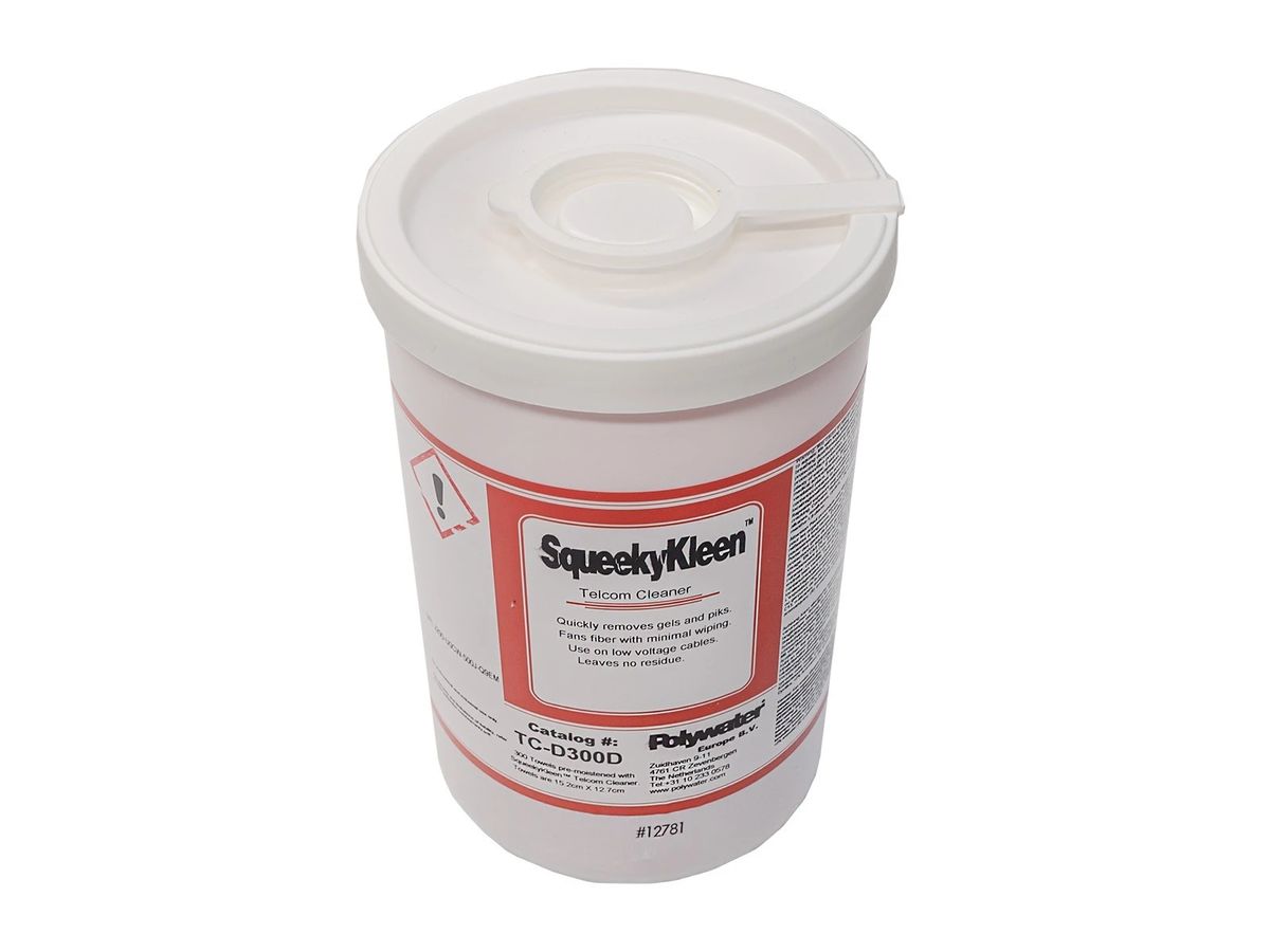 Squeekykleen reinigt en ontvet snel de gel die glasvezelkabels vaak bevatten.