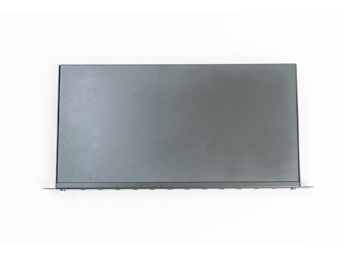 Het 19 inch paneel (1HE) van gepoedercoat plaatstaal is uitgevoerd in de kleur grafiet.
