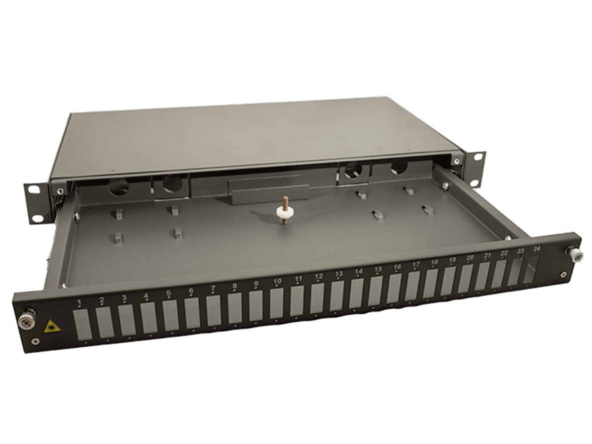 Mogelijkheid tot plaatsen van 24 stuks SC duplex adapters of 24x LC quad adapters.