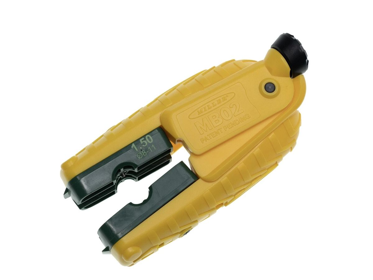 De MB02 van Ripley Miller is een universele stripper met een handzame behuizing waar je verschillende geleiders in kunt plaatsen naar eigen behoefte. Standaard worden de geleiders meegeleverd voor kabels van 8-11 mm.
