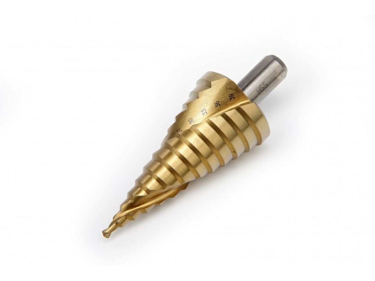 Met deze stappenboor (piramideboor) boor je zorgvulig en nauwkeurig afgeronde gaten.
